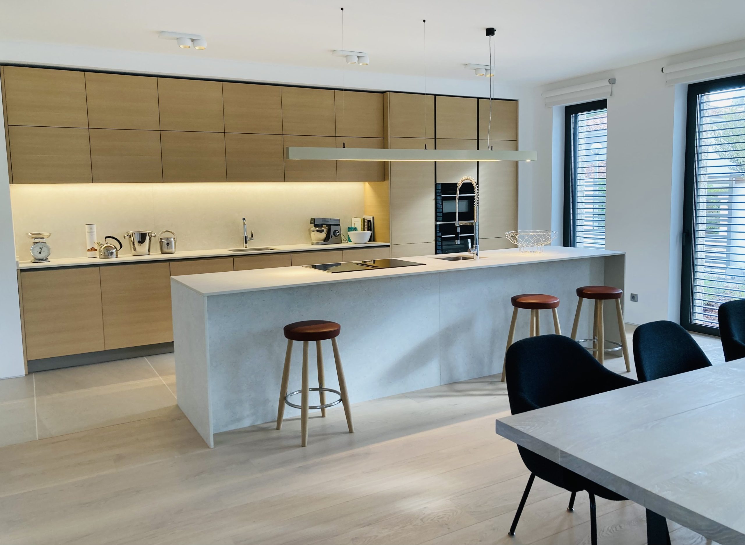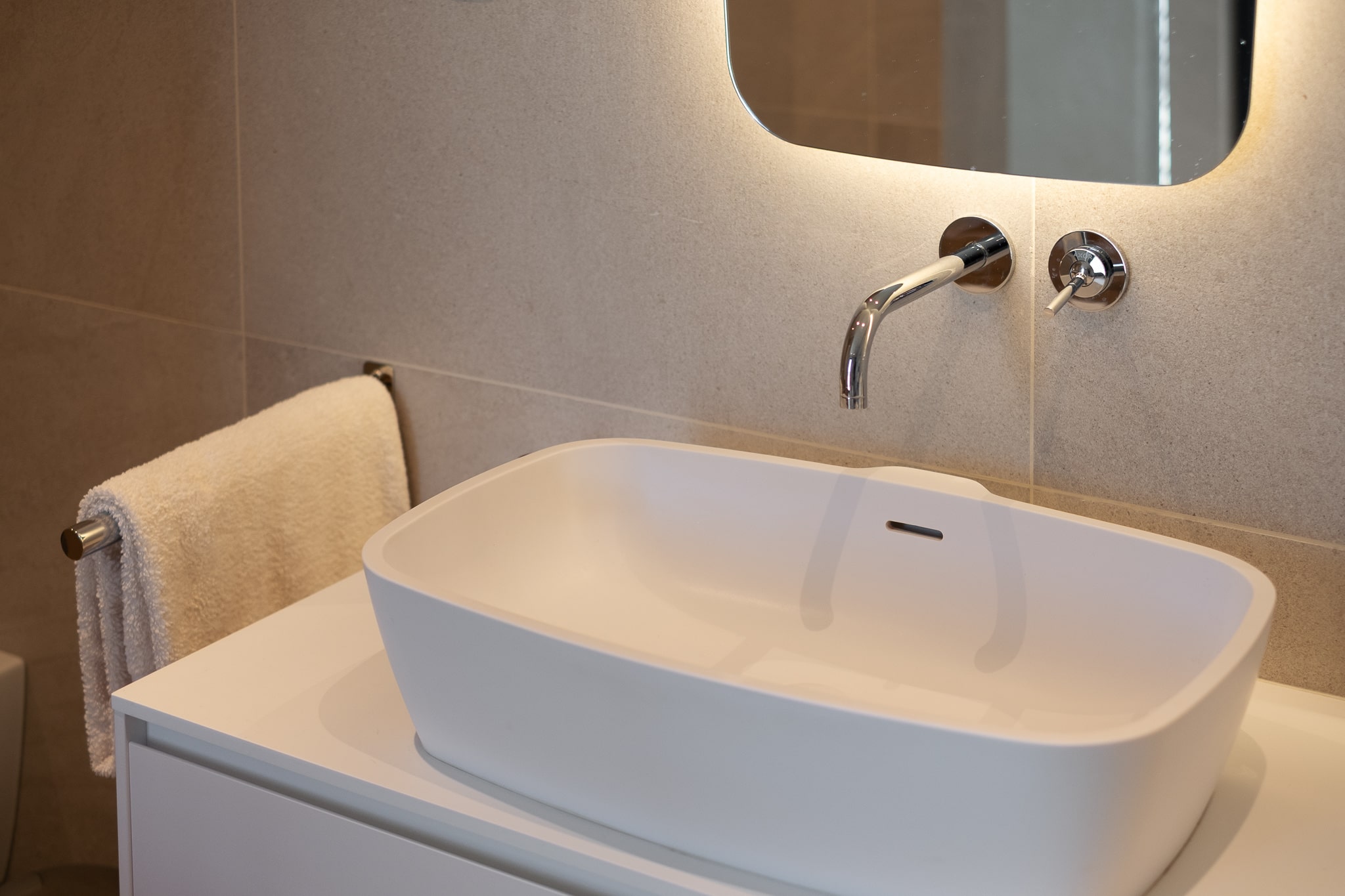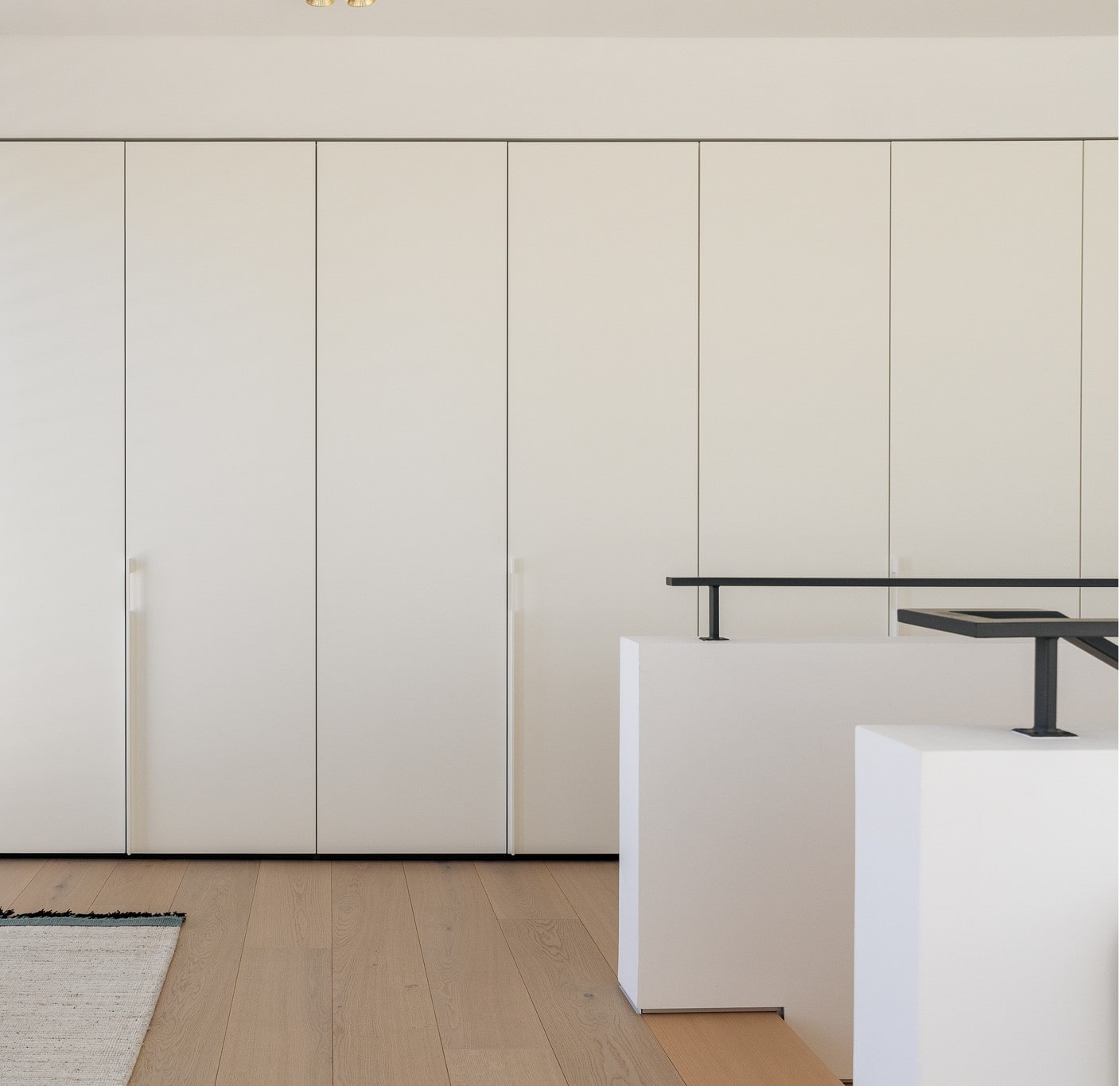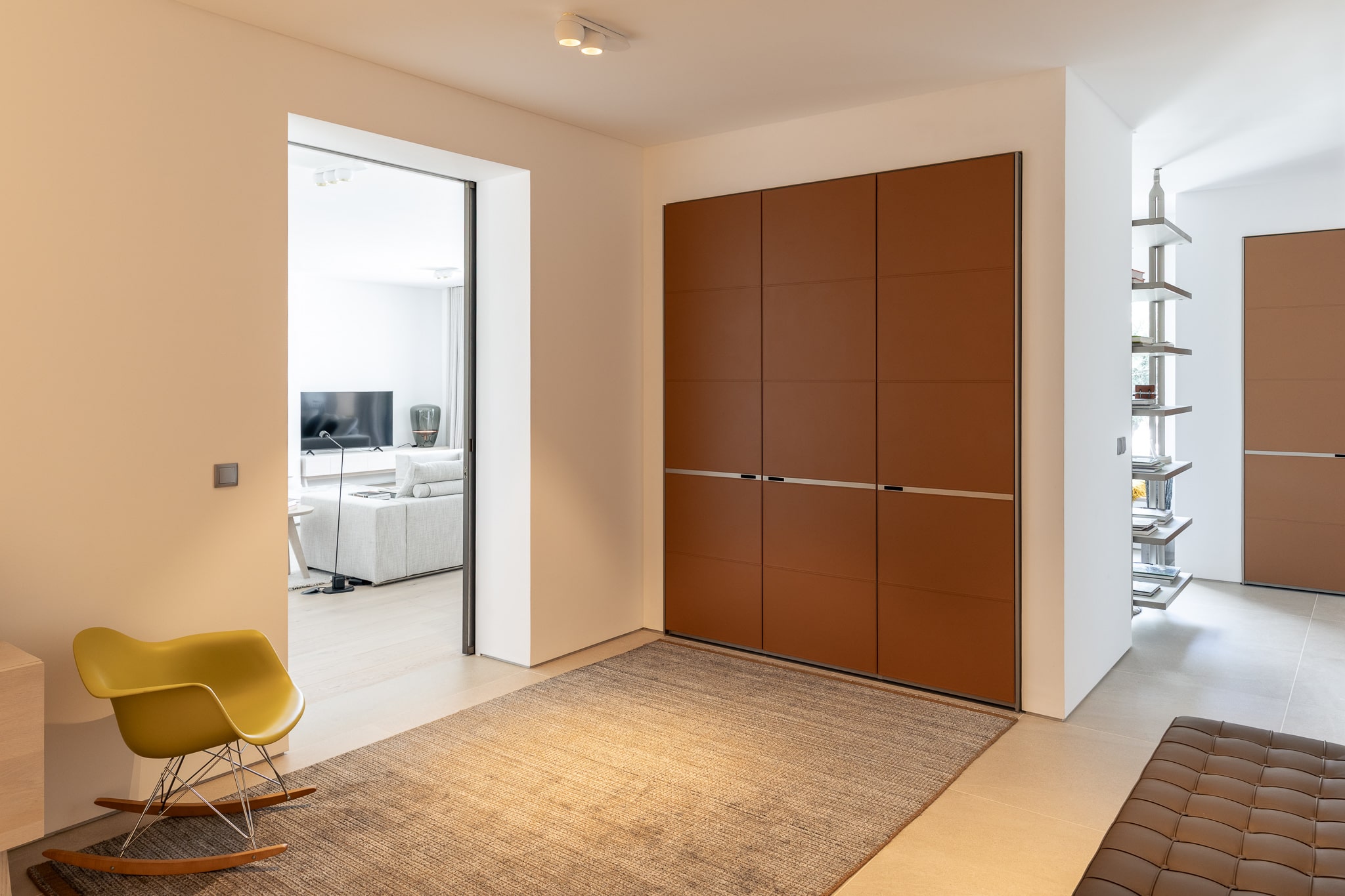 The villa features a range of Poliform wardrobes and two Poliform kitchens and the furniture has been selected from leading brands such as Flexform, Riva, Knoll, Zeitraum, Carl Hansen, Fritz Hansen, and Vitra. The bathrooms are equipped with Agape, a distinguished name in bathroom architecture.