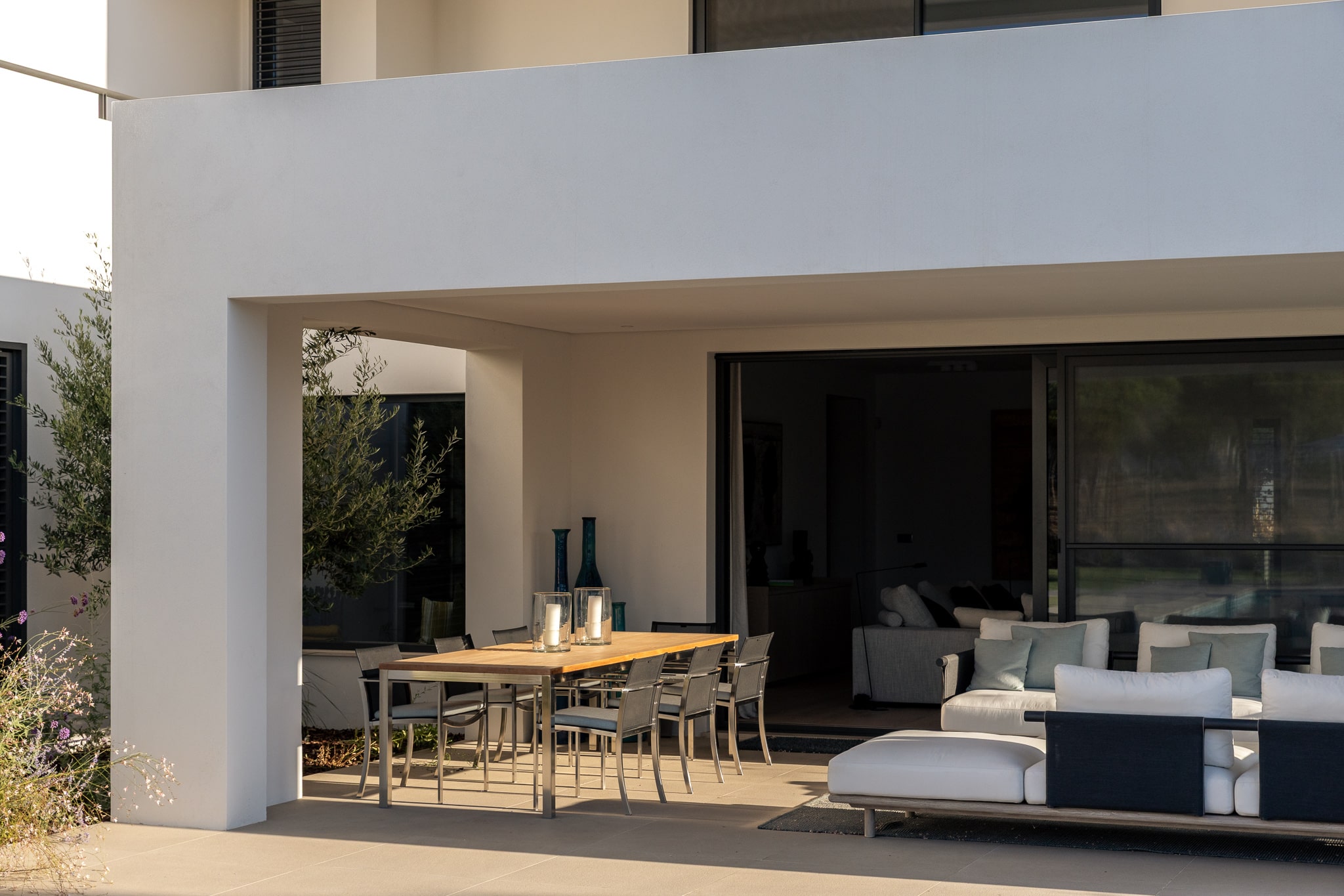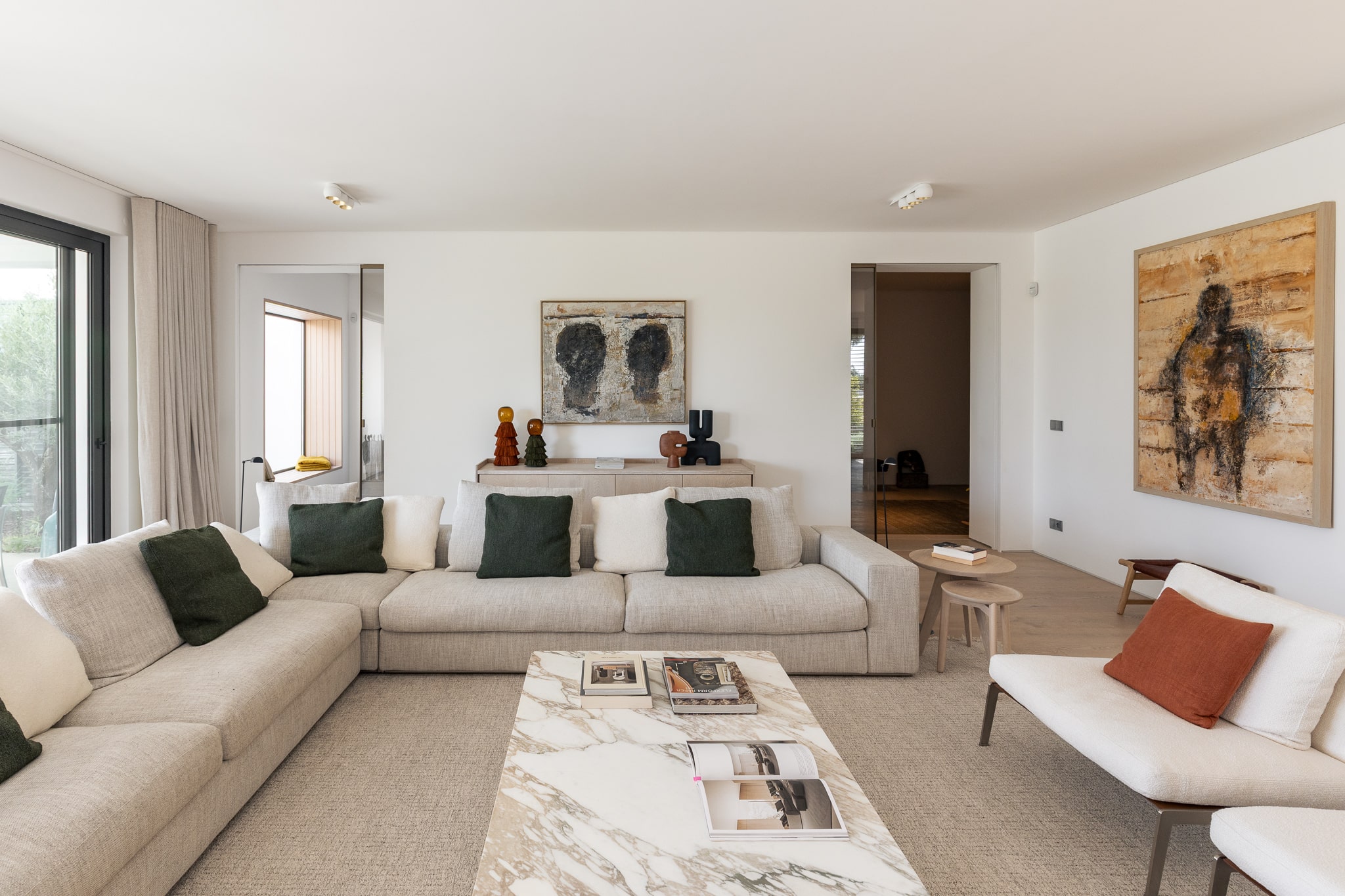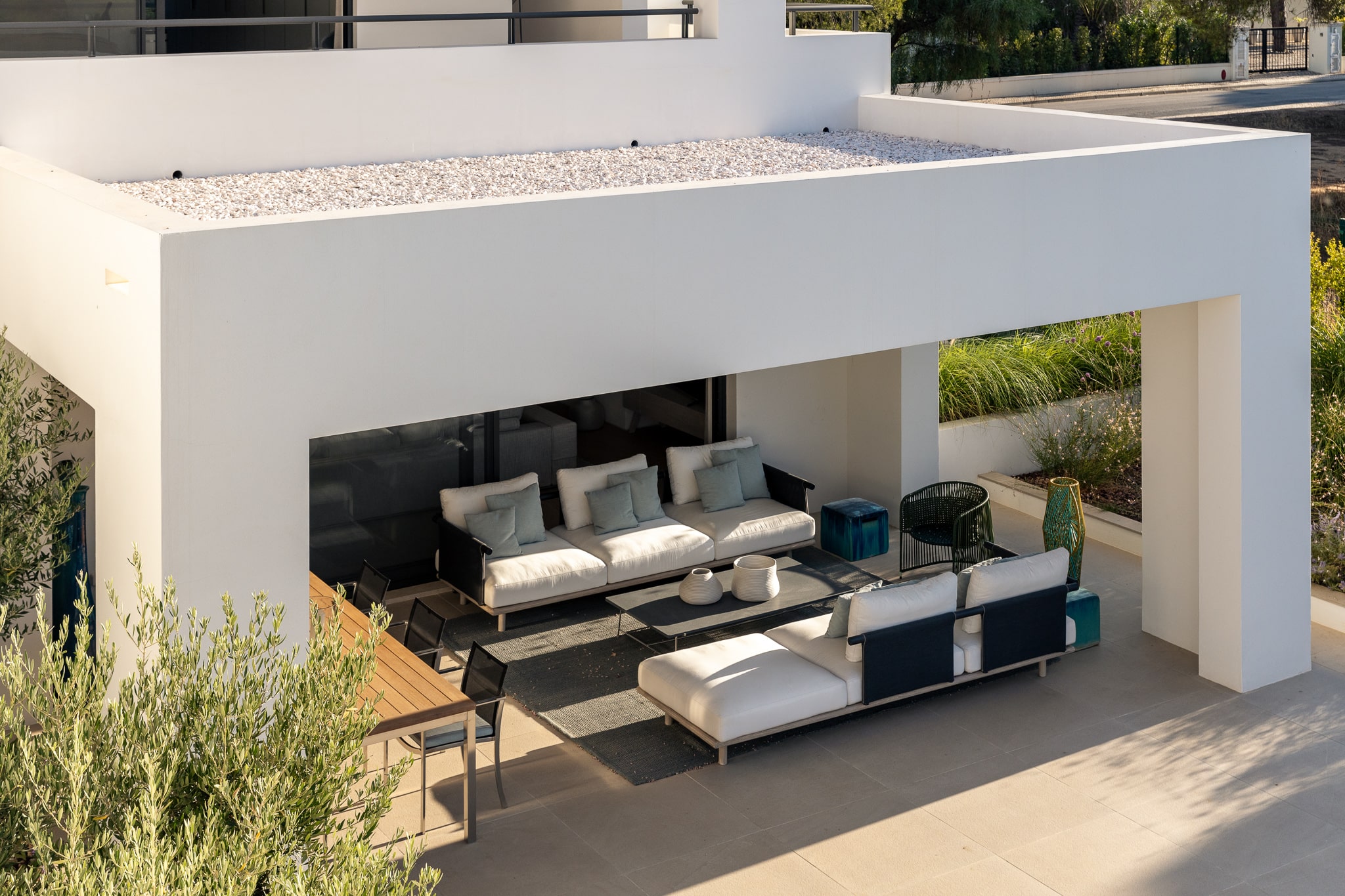 This home also offers the ultimate outdoor living experience. The villa is surrounded by a stunning landscape, which can be enjoyed from several lounge areas that are furnished with Royal Botania and Roda and complemented by decorative objects from Gervasoni.