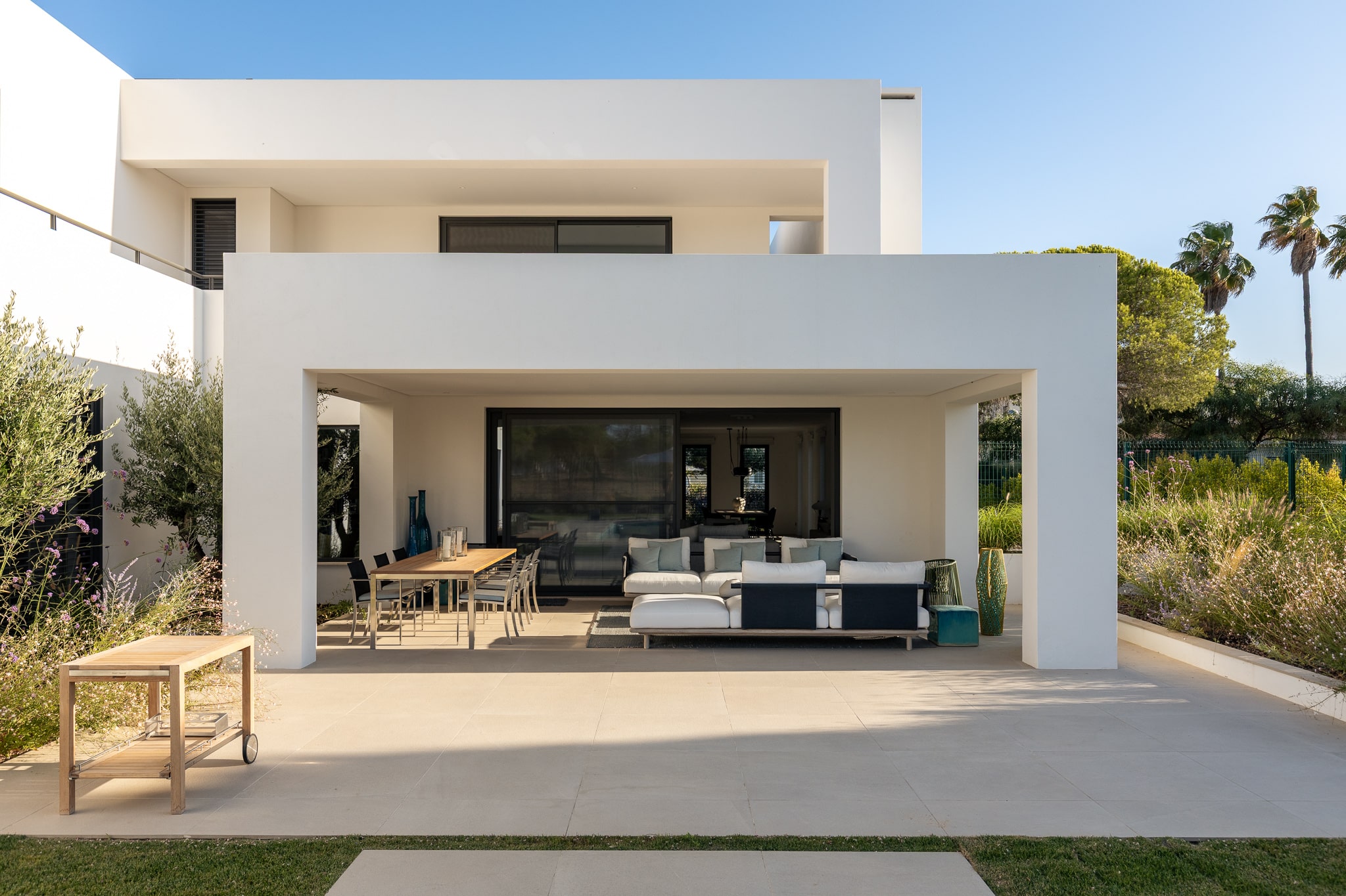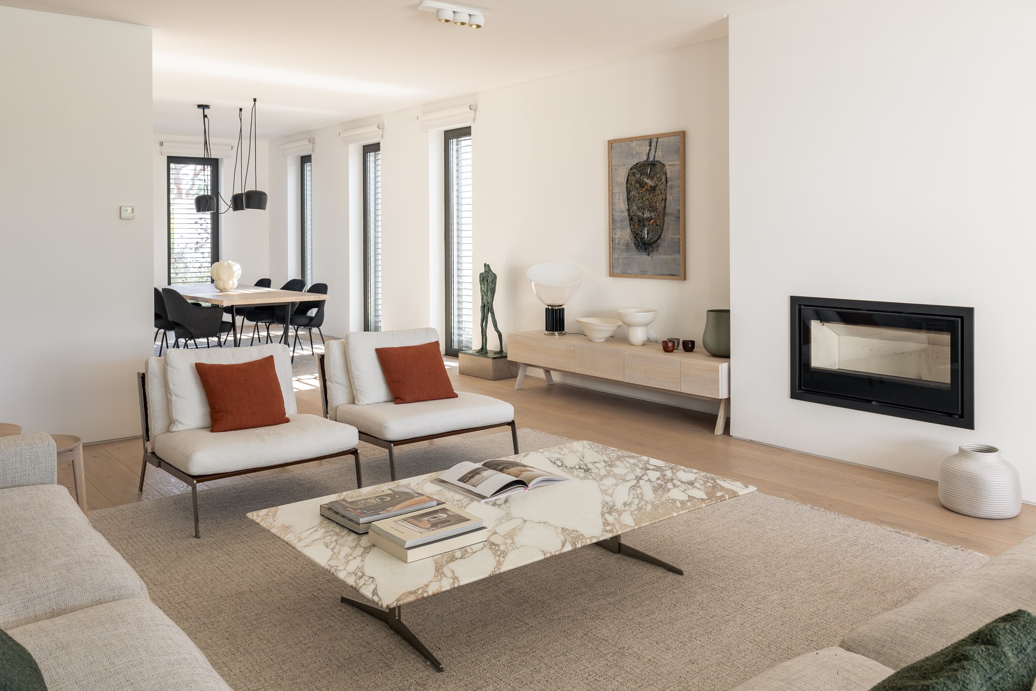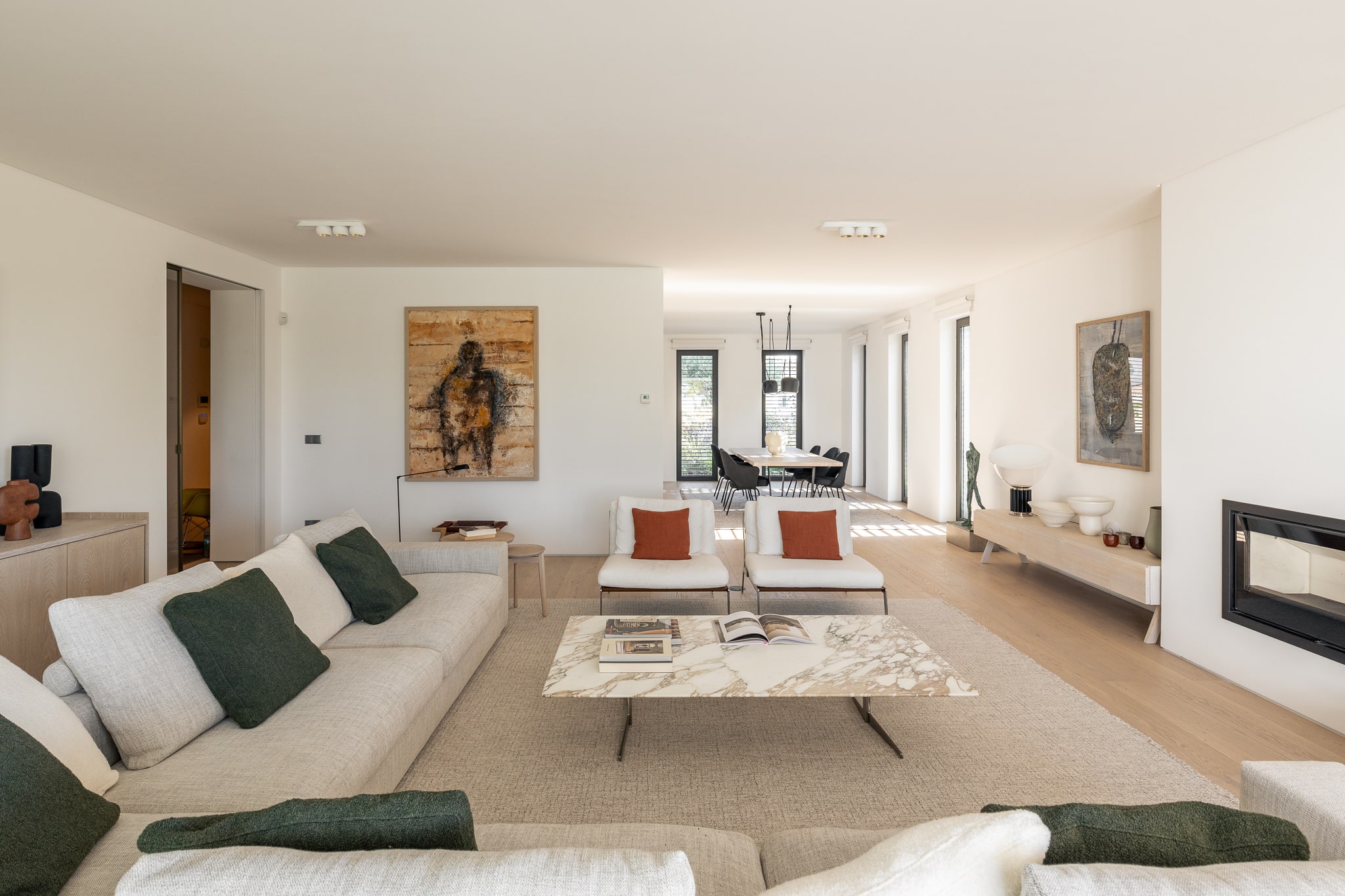 This home also offers the ultimate outdoor living experience. The villa is surrounded by a stunning landscape, which can be enjoyed from several lounge areas that are furnished with Royal Botania and Roda and complemented by decorative objects from Gervasoni.